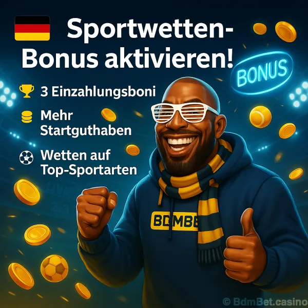 Wir bieten auch ein spannendes Bonusprogramm für Sportwetten. Neue Spieler können ein Willkommenspaket genießen, das Boni auf ihre ersten drei Einzahlungen enthält und zusätzliche Mittel bietet, um auf verschiedene Sportereignisse zu wetten. Überprüfe die BDMBet-Sportwetten-Willkommensbonus-Bedingungen für detaillierte Informationen und Vorteile.